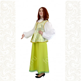 Платье «Дмитра» отрезное по талии, рукав реглан, юбка - почти солнце, длиной немного ниже колена. С поясом. Важно отметить, что декор платья выдержан в славянском стиле, но в целом, платье «Дмитра» - современное прочтение народных традиций. Как правило, дети и подростки с удовольствием выбирают его. Романтичное, удобное и нарядное, оно дарит ощущение радости и праздника. Замечательно подходит для тематических праздников в детских  учебных заведениях, по фасону и яркости цветов отлично подойдет для танцевальных коллективов. Платье выполнено из немнущейся, матовой ткани "габардин" символичных для славян цветов ( красного, синего, зеленого, бордового).