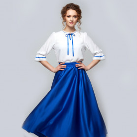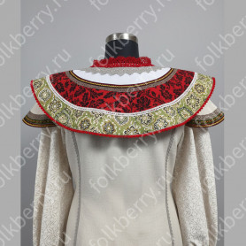 Платье Олеся удлиненное ( миди, до щиколотки) станет отличным вариантом сценического костюма! Сочетание белого и красного цвет, длинная юбка  придают платью торжественности. Свободный силуэт, рукав реглан, регулируемая горловина добавляют вещи комфортности.