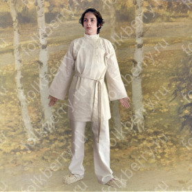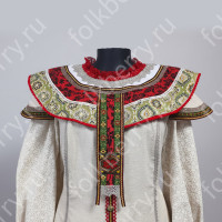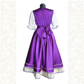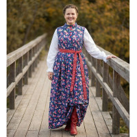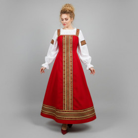 Декор платья - жаккардовая тесьма со славянскими символами. Талия немного завышена, пояс в комплекте.