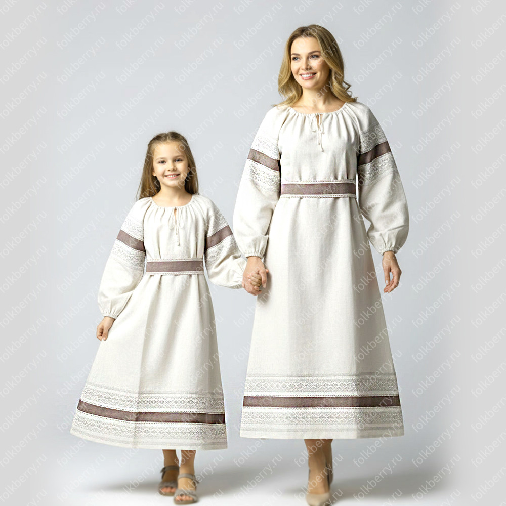 При заказе, пожалуйста, пишите обхват груди и рост. Платье будет выполнено с учетом Ваших мерок в течении 2-5 дней. Стоимость платья при этом останется стандартной. Стоимость платья зависит от размера.К платью "Вологда" в нашем магазине можно подобрать очелье или кокошник, сумочку, комплект для мальчика.