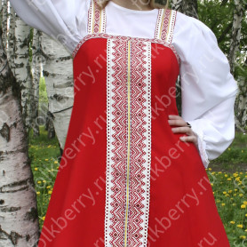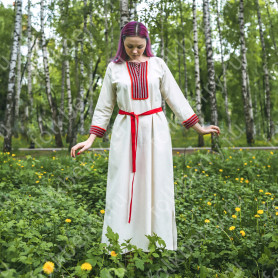 Материал: лен – 70%, хлопок – 30%. Ткань отличается хорошей плотностью, качеством, красивым цветом. Возможен комбинированный вариант, дополненный другим цветом и машинной вышивкой.