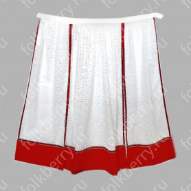 Эта традиционная женская рубаха ( длинная туника с поликами под мышками, с разрезами по бокам, с поясом) из белого льна декорирована по низу рукава, подолу и на груди широкой жаккардовой тесьмой со славянскими обережными символами красного цвета на белом фоне.