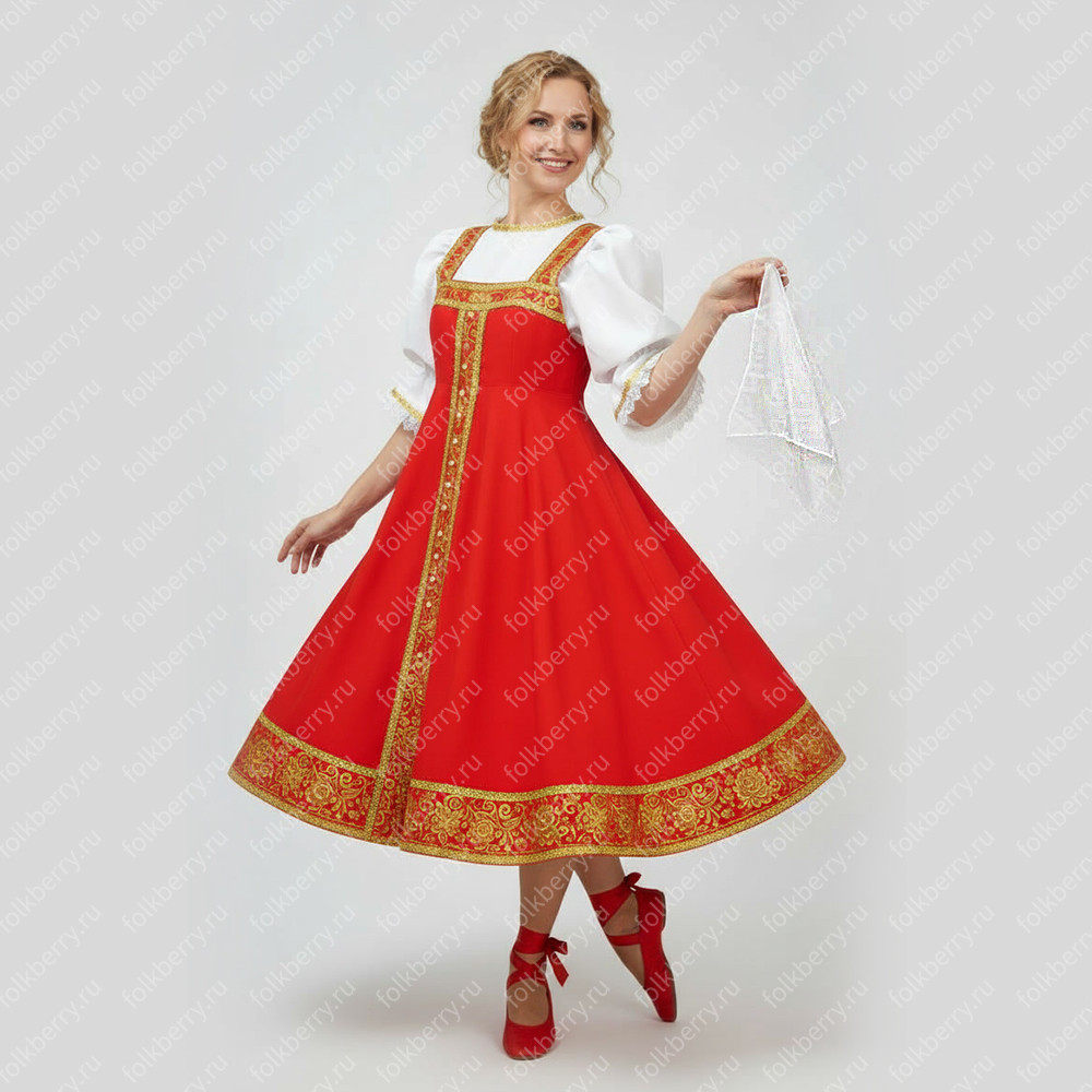Сарафан с блузой «Аленушка » – яркий наряд в духе народных традиций. Оригинальный дизайн, красивые оттенки синего, бирюзового, белого цветов, качественное исполнение комплекта порадуют Вас. Это хороший выбор для участников танцевально-театральных коллективов.