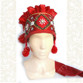 В комплект входит очелье пояс с кисточками, выполненные в технике ткачества.