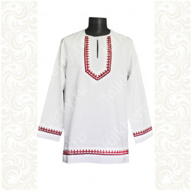 Блуза выполнена из качественного хлопка поплин. Рукав реглан, в верхней части вставки красного цвета, внизу манжеты.