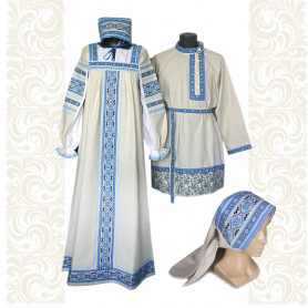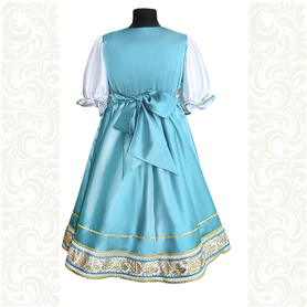 Сарафан с блузой «Гжель-2» – яркий наряд в духе народных традиций. Оригинальный дизайн, красивые оттенки синего, бирюзового, белого цветов, качественное исполнение комплекта порадуют Вас. Это хороший выбор для участников танцевально-театральных коллективов.
