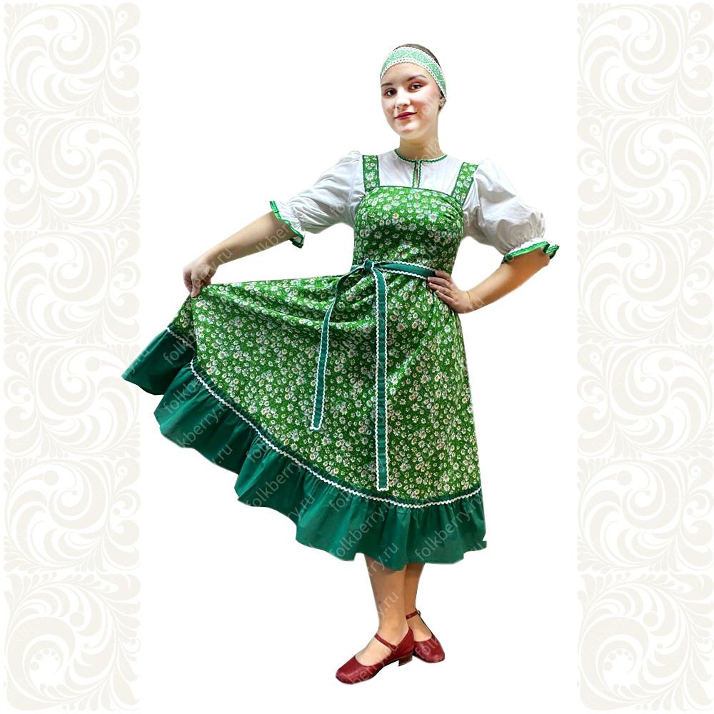 Сарафан с блузой – яркий наряд в духе народных традиций. Оригинальный дизайн, красивые оттенки синего, бирюзового, белого цветов, качественное исполнение комплекта порадуют Вас. Это хороший выбор для участников танцевально-театральных коллективов.