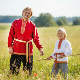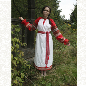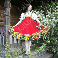 Сарафан с блузой «Дарина» выполнен в красном цвете в традиционном русском стиле. Плотный матовый габардин не мнется, не блестит под софитами.