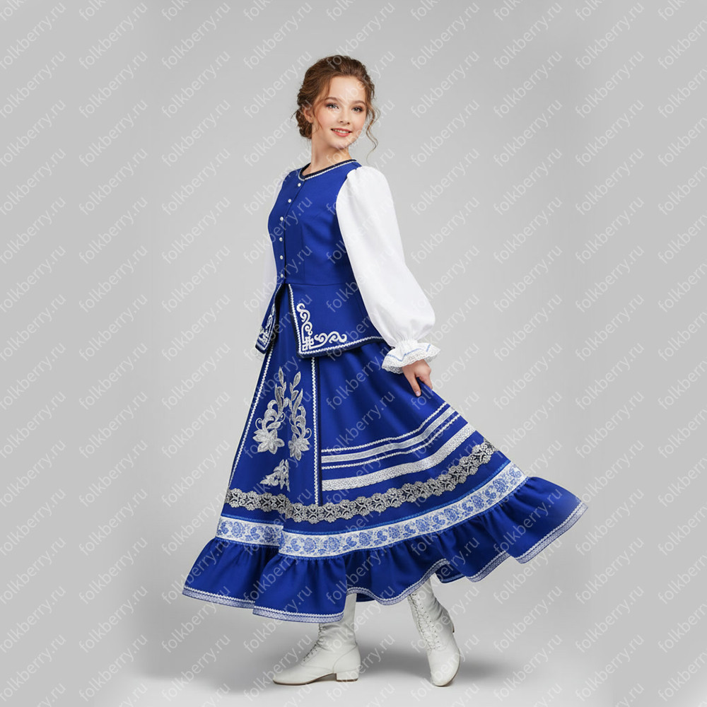 Женский танцевальный костюм Катюша, габардин, синий